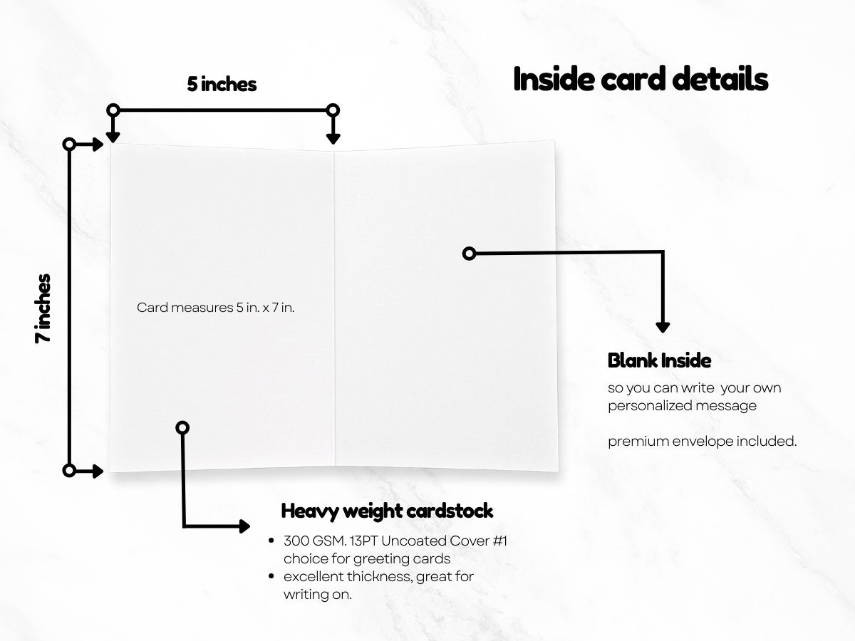 + Our cards are 5”x7” and come with a envelope