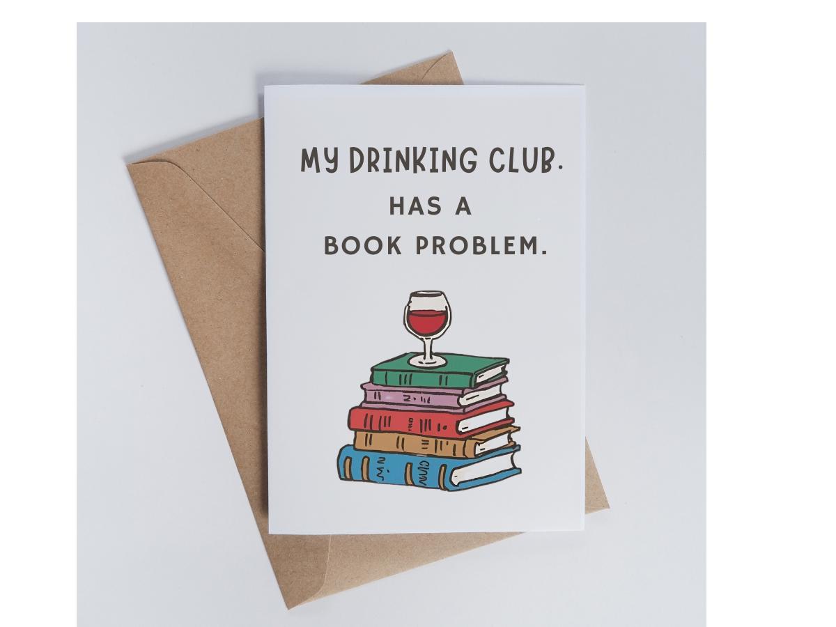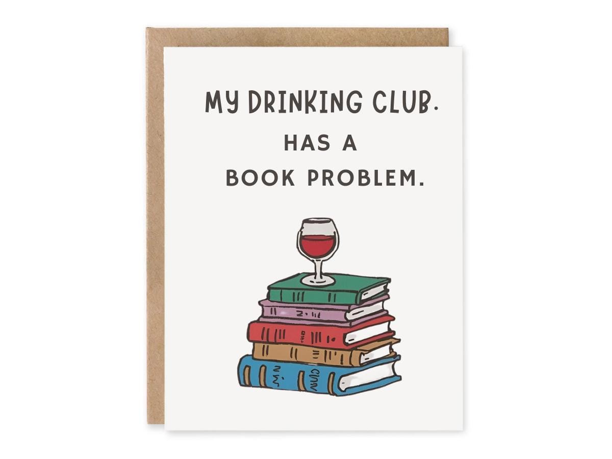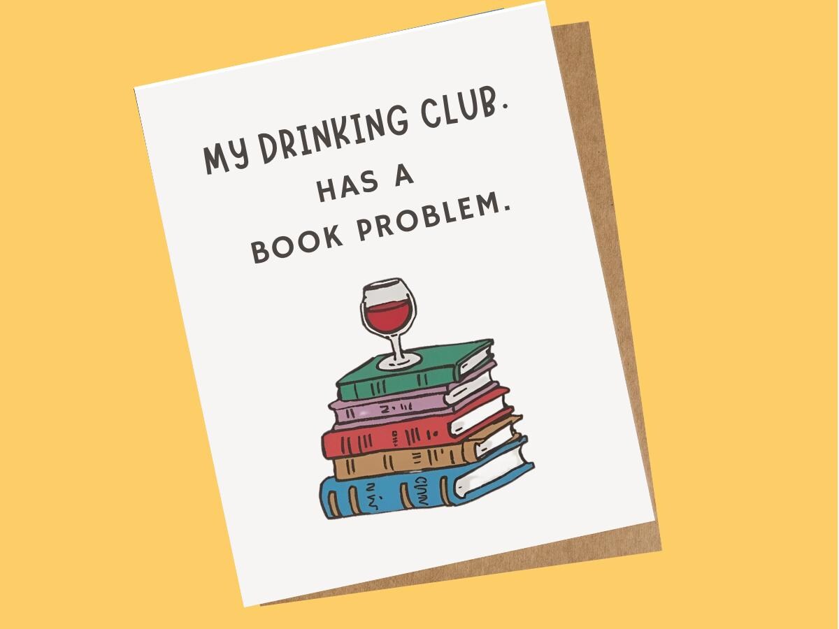 Funny Book Lover Card, Book Club Card 8x10, wine gift, My Drinking club has a a book problem