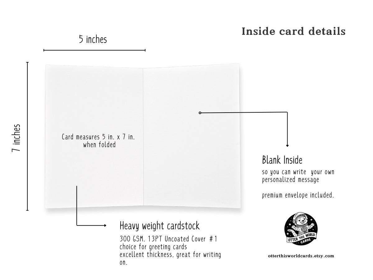 At Otter This World Cards, we specialize in creating greeting cards that capture the essence of humor and quirkiness. Our mission is to spread positivity through words of kindness, love, and encouragement, along with a dash of humor to share with your loved ones. Whether you're celebrating a funny achievement, expressing gratitude in a unique way, marking an unusual birthday, or simply sending a cheeky greeting for no particular reason, our collection has something for every funny occasion. Trust us to cover all your funny greeting card needs with a touch of whimsy and laughter!