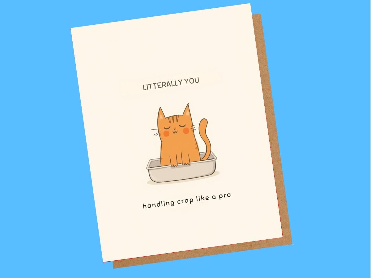 Send a smile with this cute cat greeting card! This 5x7 card features an adorable illustrated kitty that’s perfect for any occasion—birthdays, thank you notes, or just to say hello. The inside is blank, so you can write your own heartfelt message. Printed on high-quality cardstock and comes with a matching envelope, it’s great for cat lovers or anyone who enjoys a touch of whimsy. Whether you’re celebrating a friend or sending a little pick-me-up, this card is sure to brighten anyone’s day!