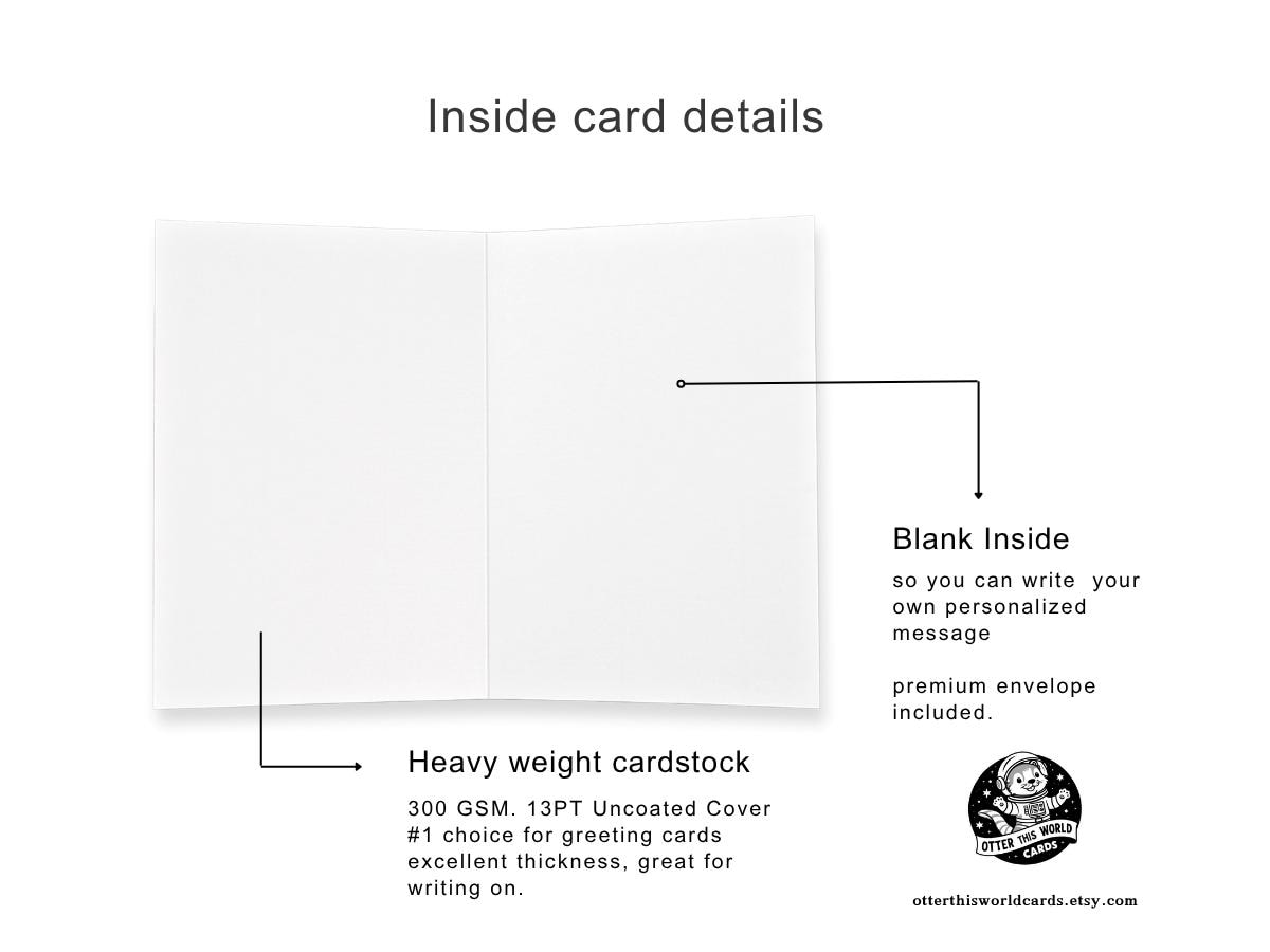 At Otter This World Cards, we specialize in creating greeting cards that capture the essence of humor and quirkiness. Our mission is to spread positivity through words of kindness, love, and encouragement, along with a dash of humor to share with your loved ones. Whether you're celebrating a funny achievement, expressing gratitude in a unique way, marking an unusual birthday, or simply sending a cheeky greeting for no particular reason, our collection has something for every funny occasion. Trust us to cover all your funny greeting card needs with a touch of whimsy and laughter!