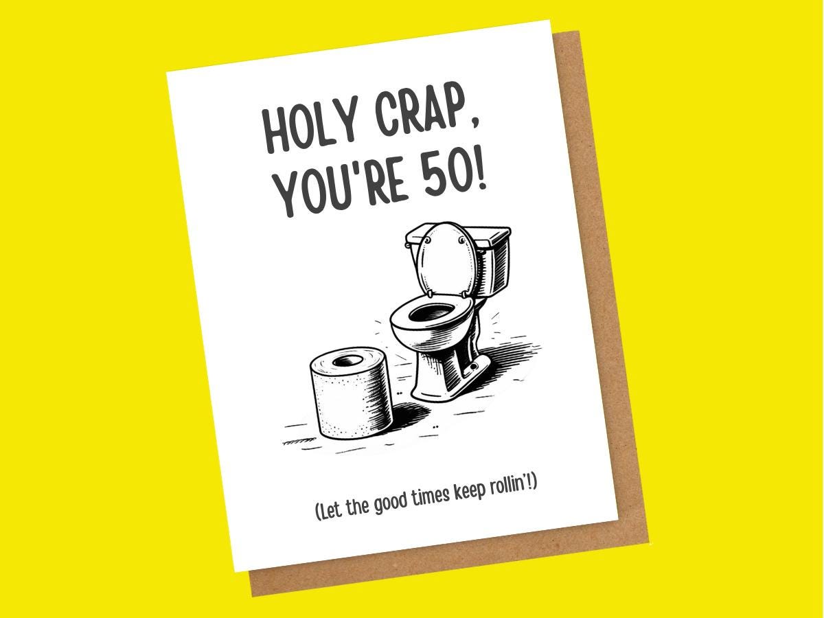 Oh, holy crap, another year has gone by! 🚽 Celebrate their special day with a card that's sure to get a laugh. This adorable 5x7 greeting card features a cute cartoon toilet, a roll of toilet paper, and the hilarious message "HOLLY CRAP!"