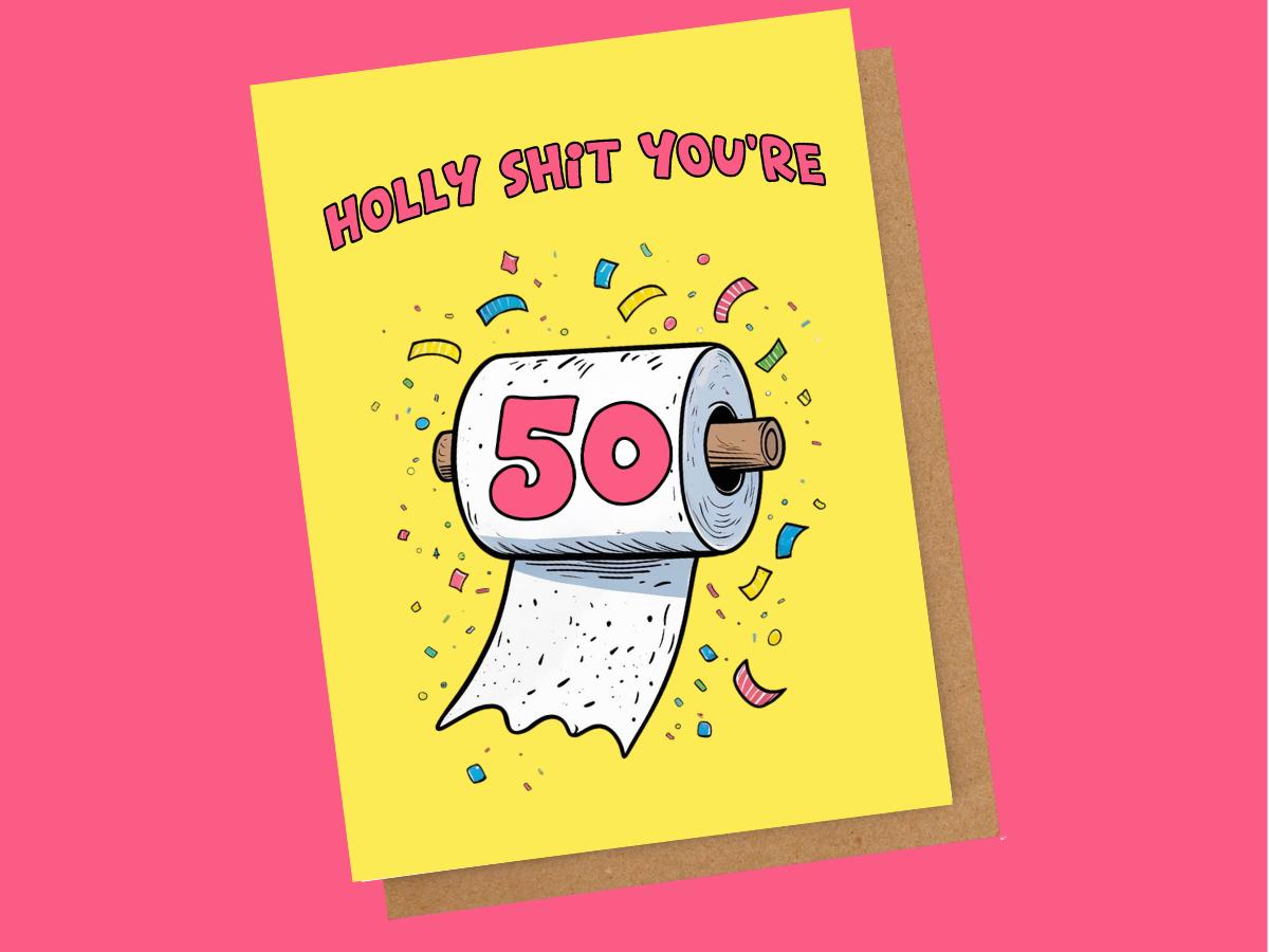 Holy Shit, You’re 50! Funny Birthday Card | Poop Joke Card for Men or Women - Physical Card, Personalized