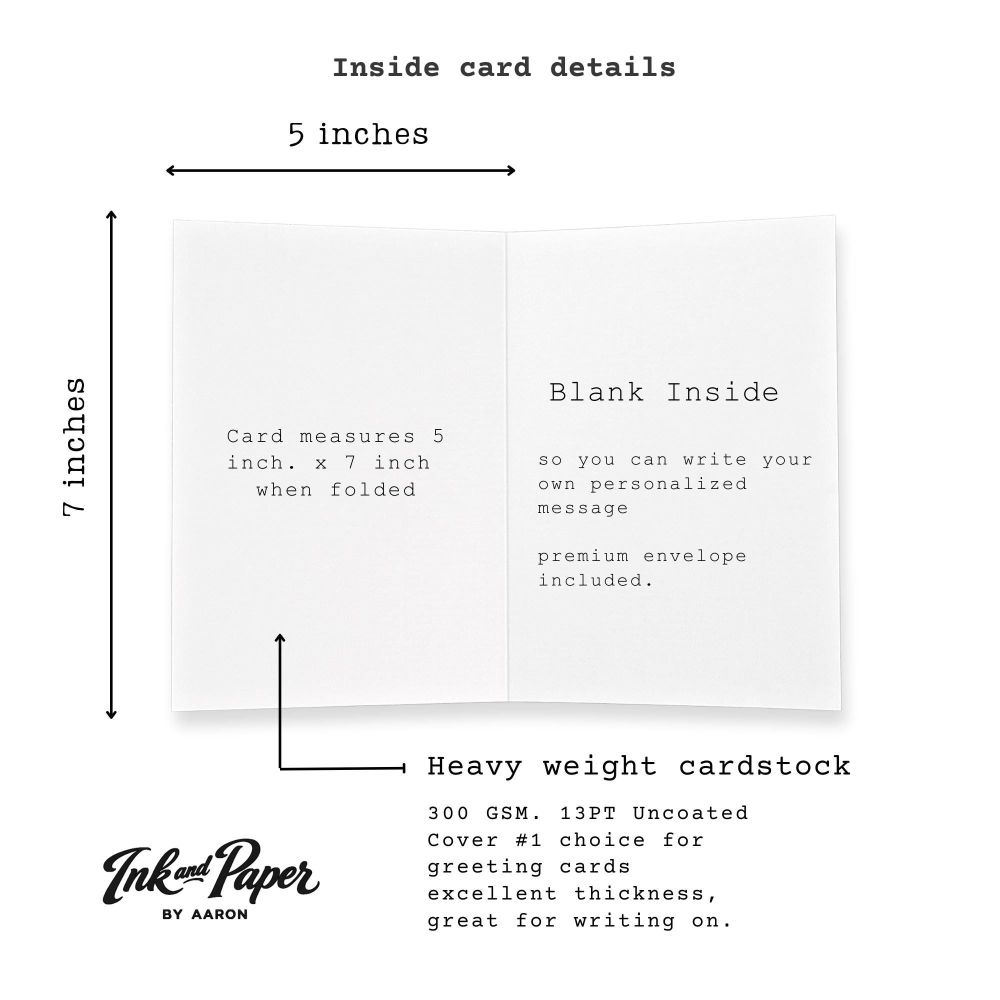 Printed on high-quality cardstock, this card is blank inside so you can add your own personal message.